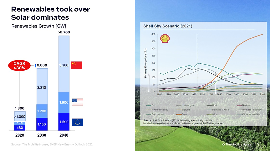 Ключовият фактор за това е проникването на възобновяемите енергийни източници. Виждаме различни източници и различни числа, но в крайна сметка всички те изглеждат еднакво - слънчевата енергия ще превземе всичко, а според Рафайнер, това вече се случва.